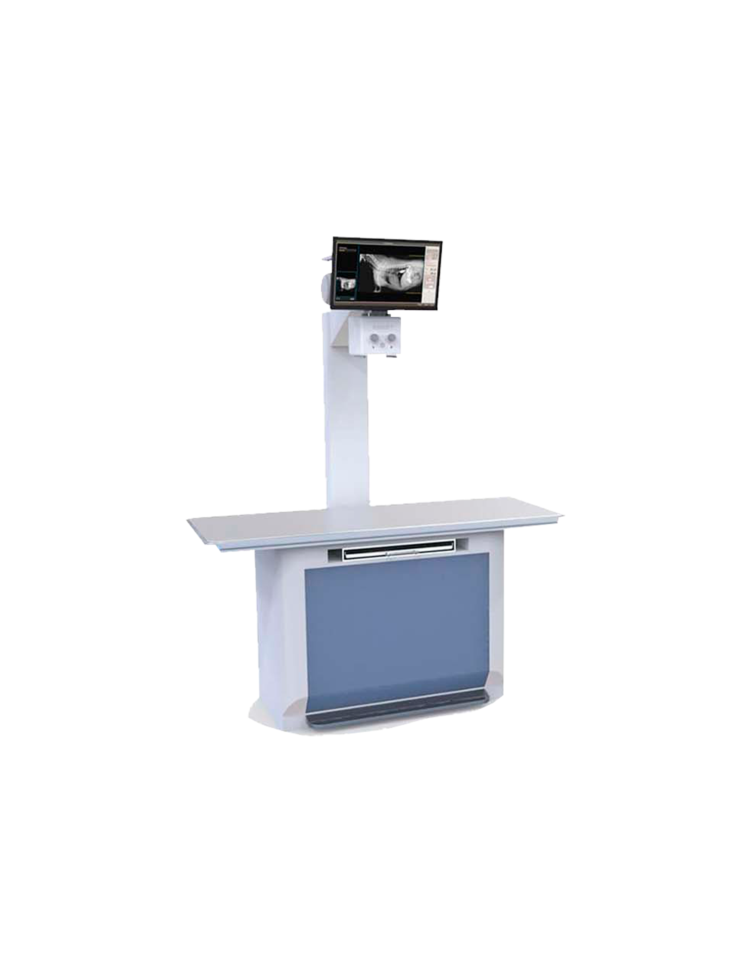 La mesa MyVet X500 es un sistema de mesa de rayos X compacto e integrado. La X500, con un tamaño de trabajo reducido, una mesa flotante de 4 posiciones y un detector de panel plano de yoduro de cesio de 17 x 17 pulgadas con anclaje, ofrece al veterinario un potente sistema de rayos X digital para todas sus necesidades de obtención de imágenes.